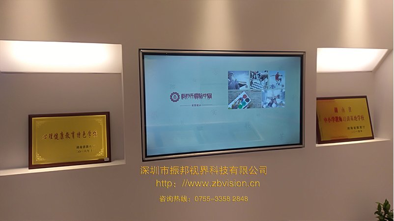 通過觸摸一體機展示長沙實驗中學歷史到現今所獲得的重大榮譽。
